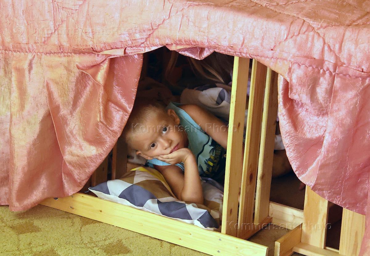 Семьи беженцев из Курской области в одном из пунктов временного размещения (ПВР) Неклиновского района.