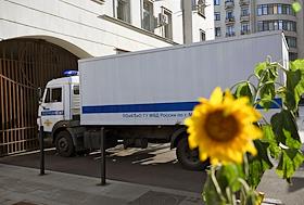 Жанровая фотография. Автомобиль МВД России въезжает на территорию Замоскворецкого районного суда.