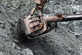 Работа асбестового карьера ПАО "Ураласбест". Жанровая фотография. Ковш экскаватора во время забора…