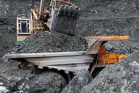Работа асбестового карьера ПАО "Ураласбест". Жанровая фотография. Экскаватор во время погрузки…