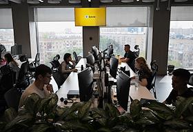 Работа офиса "Т-Банк" на Грузинском валу в бизнес-центре AFI Square. Жанровая фотография. Сотрудники…