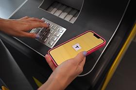 Работа офиса "Т-Банк" на Грузинском валу в бизнес-центре AFI Square. Жанровая фотография. Банкомат в…