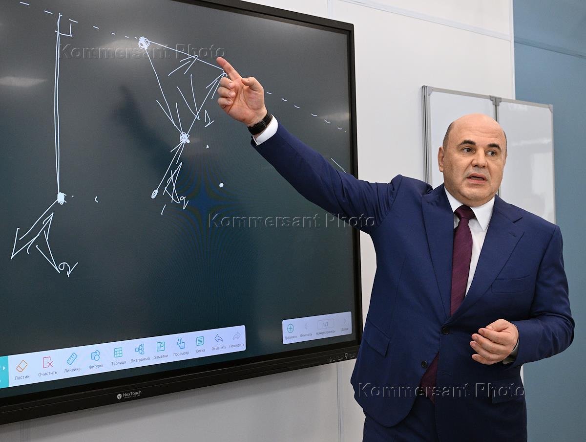 Председатель правительства России Михаил Мишустин во время посещения инженерно-технического лицея…