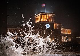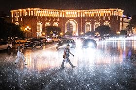 Виды вечернего Еревана во время грозы. Площадь Республики. Жанровая фотография.