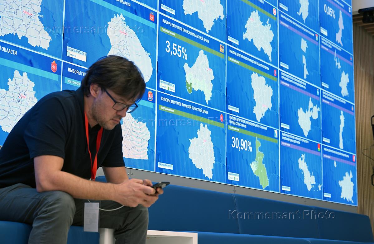 Единый день голосования. Итоги первого дня голосования на выборах в Мосгордуму в Информационном центре ЦИК России.
