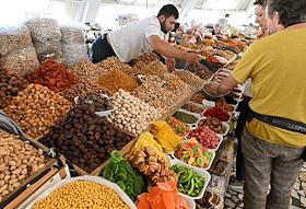 Жанровая фотография. Городской рынок. Торговля орехами и восточными сладостями на рынке.
