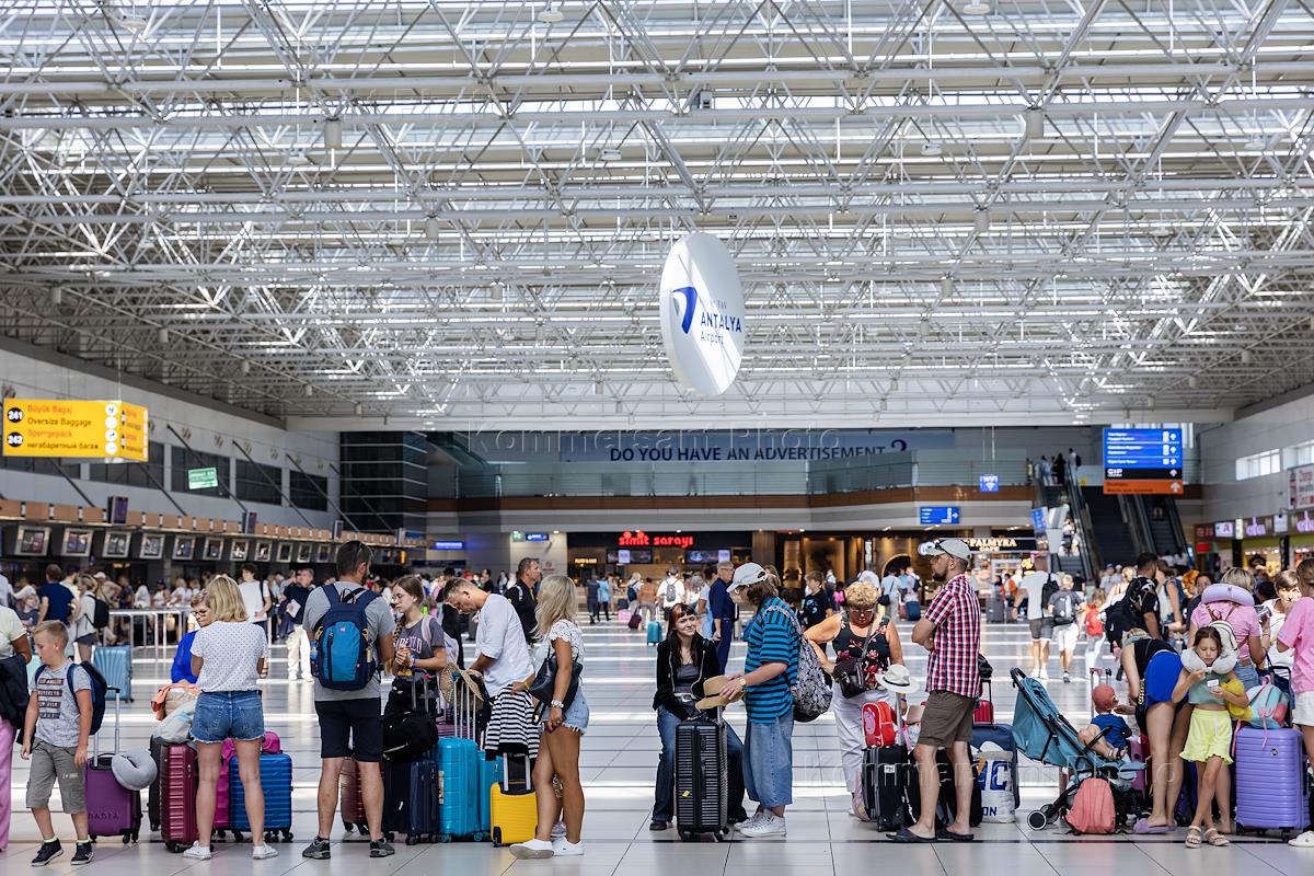 Виды Турции. Жанровая фотография. Анталия. Пассажиры в очереди на регистрацию в аэропорту Анталии.