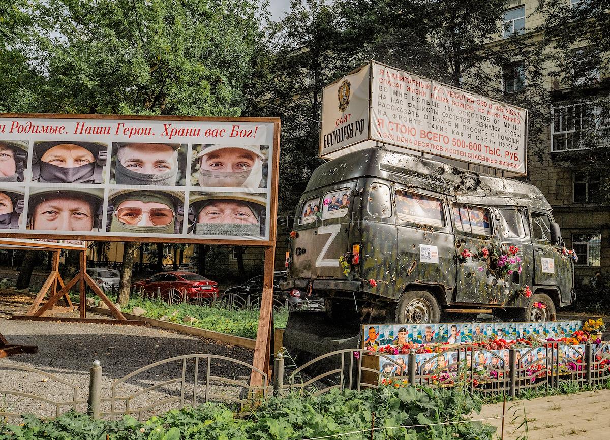 Виды Санкт-Петербурга. Мемориал памяти погибших в зоне СВО перед зданием благотворительного фонда…