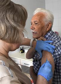 Работа городской поликлиники. Пациент во время вакцинации от гриппа.
