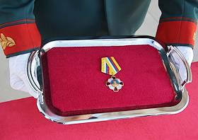 Церемония вручения Ордена Жукова радиотехническому соединению Южного военного округа, на Самбекских высотах.