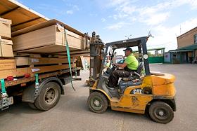 Производство декораций компании "Формика". Жанровая фотография. Разгрузка грузового автомобиля с…