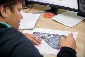 Производство декораций компании "Формика". Жанровая фотография. Инженер проектировщик делает пометки…