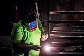 Производство декораций компании "Формика". Жанровая фотография. Сотрудник во время сварки…