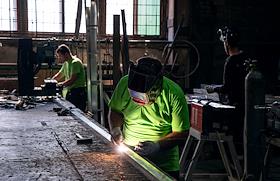 Производство декораций компании "Формика". Жанровая фотография. Сотрудники во время сварки…