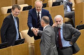 Пленарное заседание Государственной думы (ГД) России. Слева направо: председатель партии…