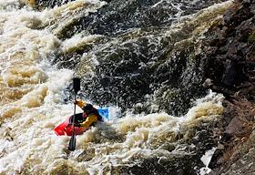 Жанровая фотография. Участник сплава на байдарке через порог Ревун на реке Исеть.