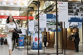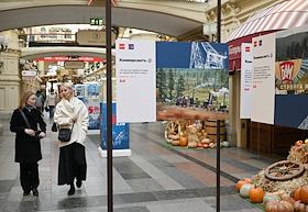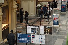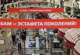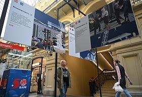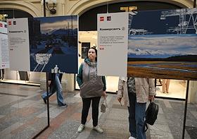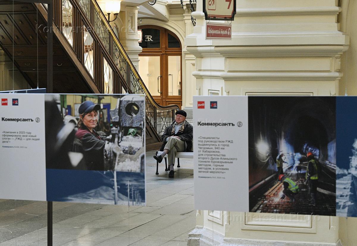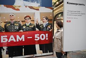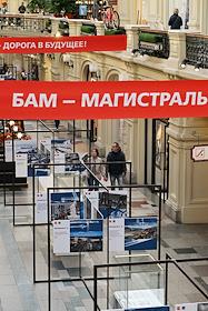 Фотовыставка, посвященная 50-летию Байкало-Амурской магистрали (БАМ), в ГУМе.