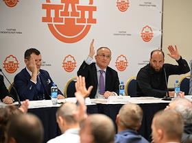 Съезд Партии любителей пива (ПЛП) в гостинице "МонАрх". Председатель ПЛП Сергей Гришин во время…