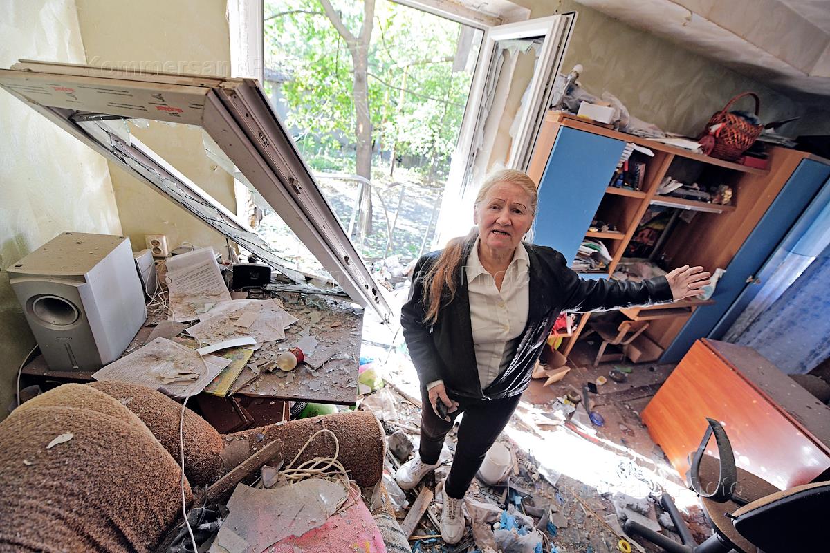 Ситуация в ДНР. Последствия обстрела Петровского района Донецка. Хозяйка пострадавшей от обстрела…