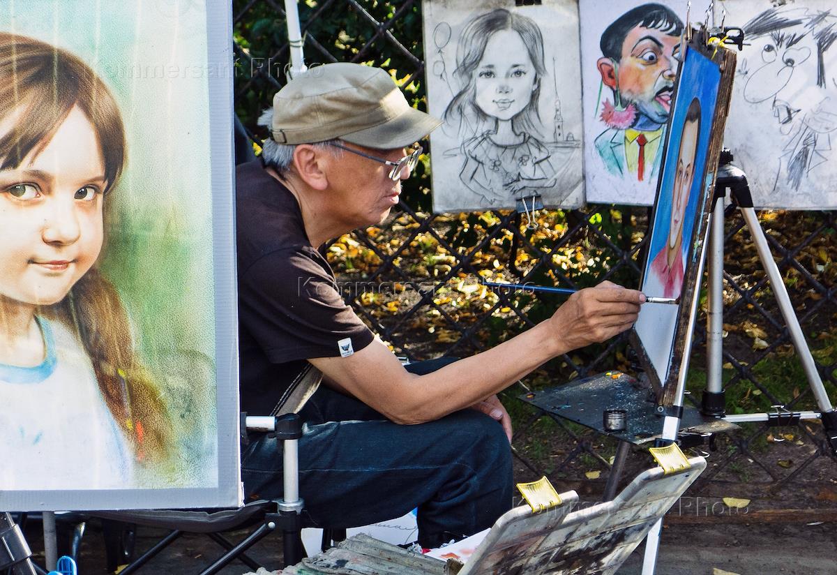 Жанровая фотография. Лето в Санкт-Петербурге. Уличный художник во время работы.