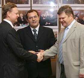 Подписание пакта о совместных действиях в борьбе с коррупцией партиями КПРФ, СПС и "Яблоко", в помещении фракции КПРФ в Госдуме.
