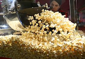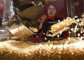 Жанровая фотография. Аппарат для приготовления попкорна в холле кинотеатра "КАРО SKY 17 Авиапарк".