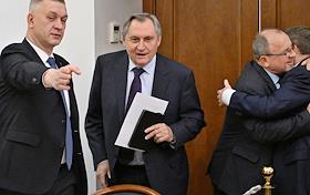 Заседание Президиума фракции "Единая Россия" в Государственной думе (ГД) России. Слева направо:…