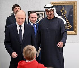 Президент России Владимир Путин и Президент Объединенных Арабских Эмиратов Мухаммед бен Заид Аль Нахайян приняли участие в открытии Центра международного сотрудничества с ОАЭ в сфере образования имени шейхи Фатемы Бинт Мубарак при гимназии имени Е.М.Примакова в Московской области.