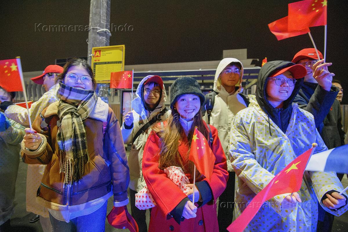 XVI Саммит БРИКС в МВЦ "Казань Экспо". Первый день. Жанровая фотография. Группа китайских граждан на…