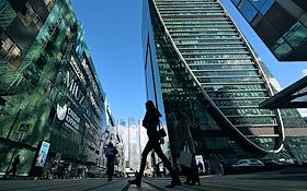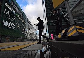 Жанровая фотография. Московский международный деловой центр "Москва-Сити". Мужчина на пешеходном…