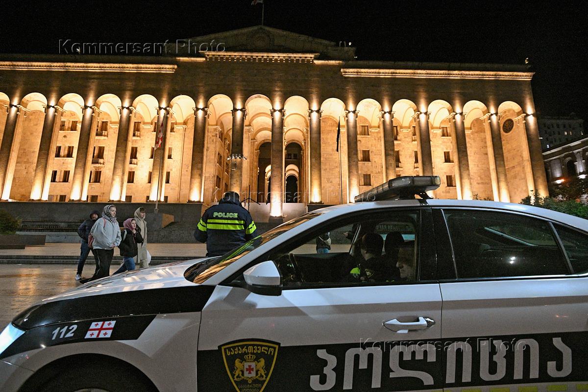 Парламентские выборы в Грузии. Жанровая фотография. Автомобиль полиции на площади у здания…