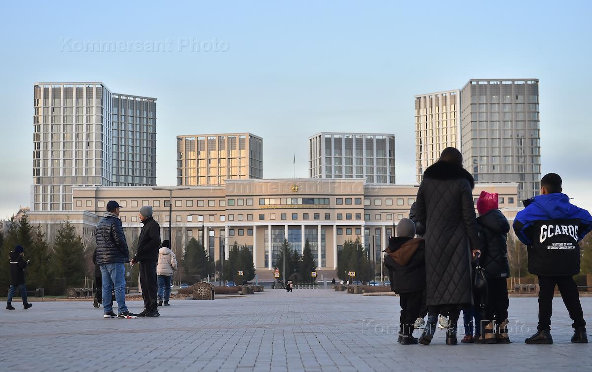 Виды Астаны. Жанровая фотография. Люди на площади перед зданием Министерства иностранных дел…