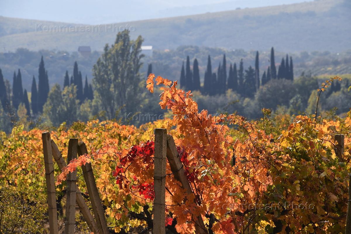 Виды Судака. Жанровая фотография. Виноградные плантации на фоне кипарисов.