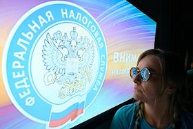 Жанровая фотография. Отражение логотипа Федеральной налоговой службы (ФНС) России в стеклах…