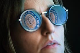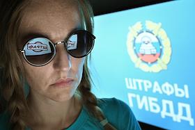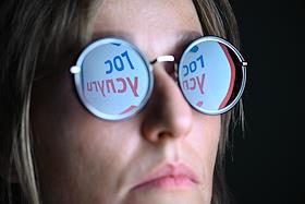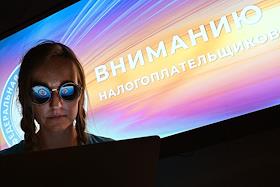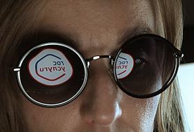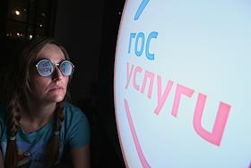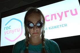 Жанровая фотография. Отражение логотипа портала "Госуслуги" в стеклах солнцезащитных очков.