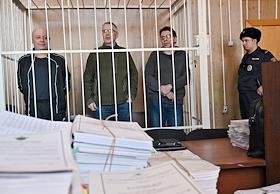 Правосудие Судебное заседание по делу бывшего сенатора Александра Сабадаша и бывших топ-менеджеров банка "Таврический" Сергея Сомова и Дмитрия Гаркуши, подозреваемых в мошенничестве, в Хамовническом районном суде.