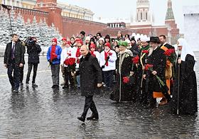 Возложение цветов к памятнику Минину и Пожарскому с участием президента РФ Владимира Путина.