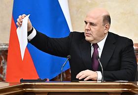 Заседание правительства России. Председатель правительства России Михаил Мишустин во время заседания.