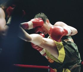 Участник чемпионата мира по кикбоксингу среди профессионалов во время поединка. Серия боев по…