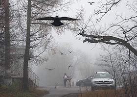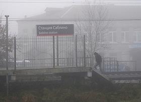 Виды поселка Ульяновка. Жанровая фотография. Железнодорожная станция Саблино во время тумана.
