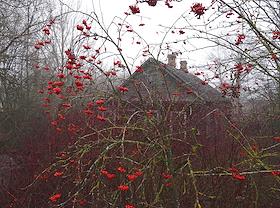 Виды поселка Ульяновка. Жанровая фотография. Ветки с плодами рябины.