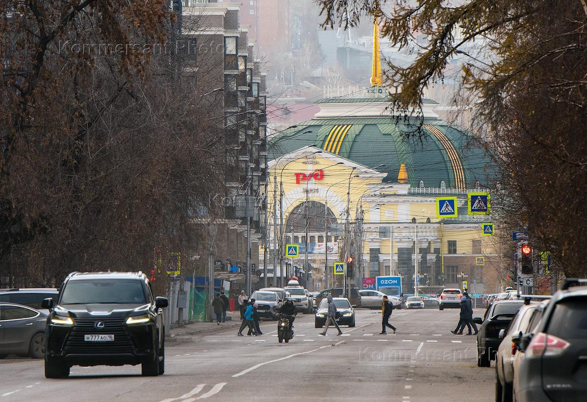 Виды Красноярска. Жанровая фотография. Вид на железнодорожный вокзал с улицы Бограда.