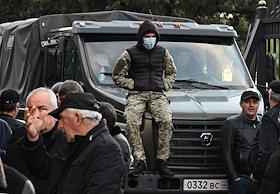 Ситуация в Абхазии. Сторонники оппозиции в камуфляже на набережной.