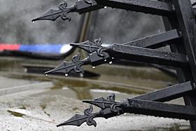 Ситуация в Абхазии. Жанровая фотография. Фрагмент металлического забора, сломанного оппозицией, у…
