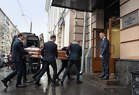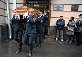 Церемония прощания с актрисой Светланой Светличной в Белом зале Дома кино. Певец Прохор Шаляпин (в…