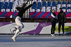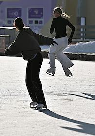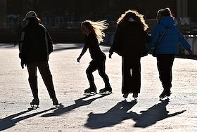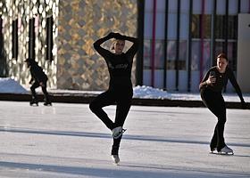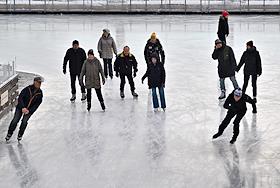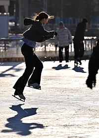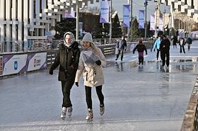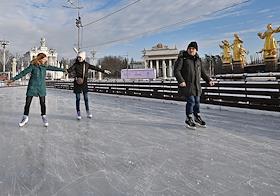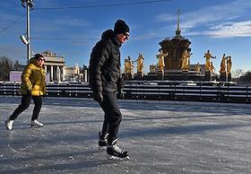 Жанровая фотография. Каток на территории ВДНХ. Люди катаются на катке.