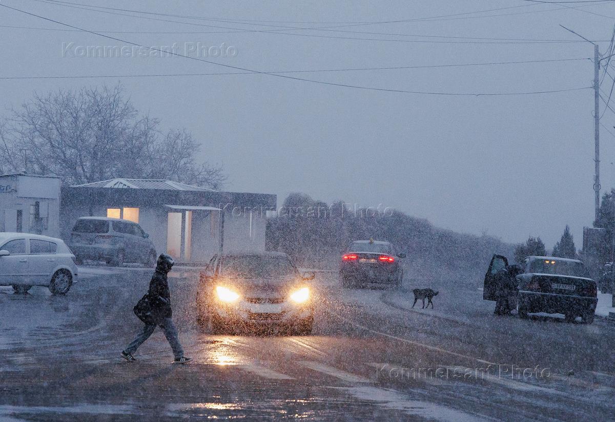 Снегопад на участке межгосударственной трассы Армения-Грузия в районе Лорийской области. Пассажир…