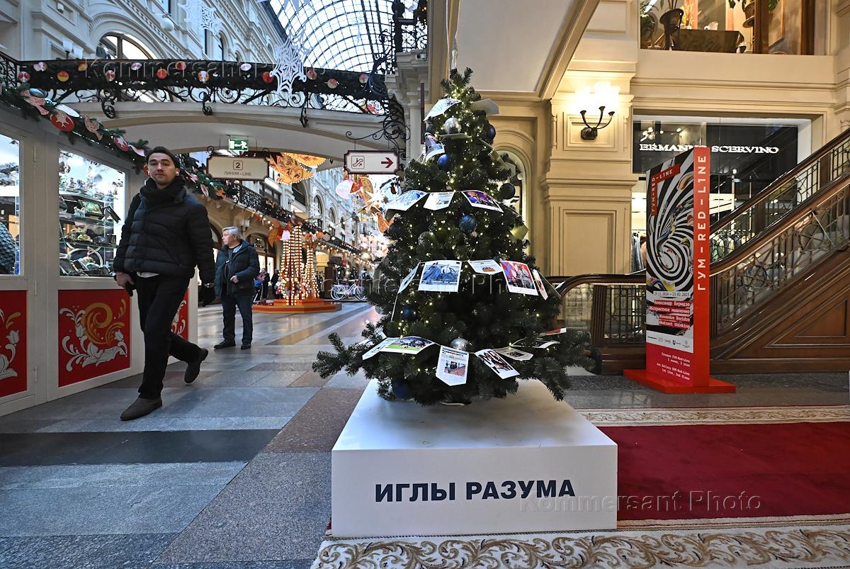 Exhibition "New Year trees in GUM on Red Square - 2025" from companies. Genre photography.