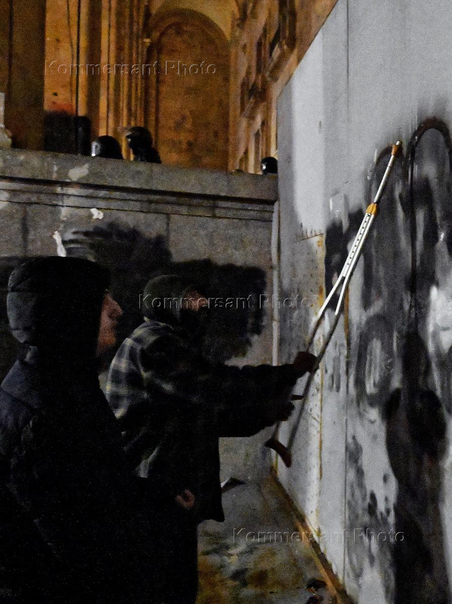 Ситуация в Тбилиси. Акция протеста оппозиции на улице Руставели. Жанровая фотография. Бумажные…