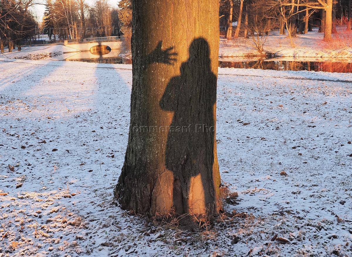 Виды Санкт-Петербурга. Жанровая фотография. Тень человека на стволе дерева.